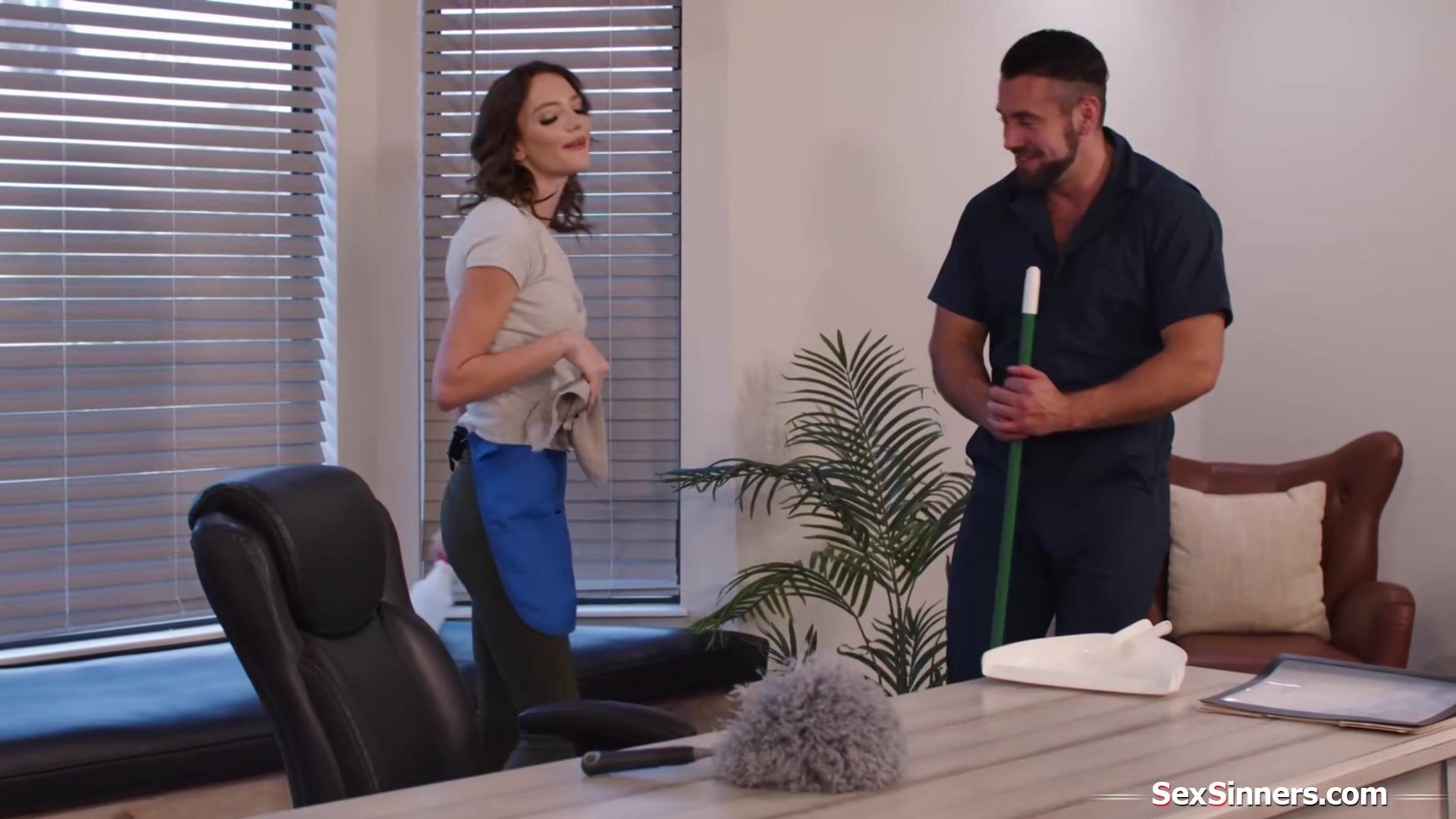 Busty cleaning lady double pussy fucked