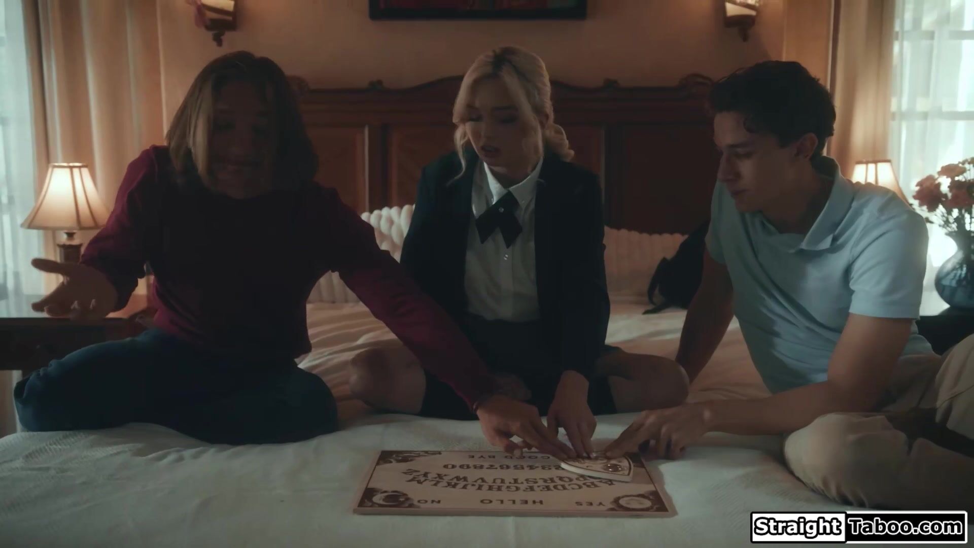 Blonde teen Lexi Lore got invited by her classmate and his stepbro to have group study. Only then she finds out that they just want to fuck her. She likes them anyway so she just gives in giving them both blowjob then gets double penetrated.