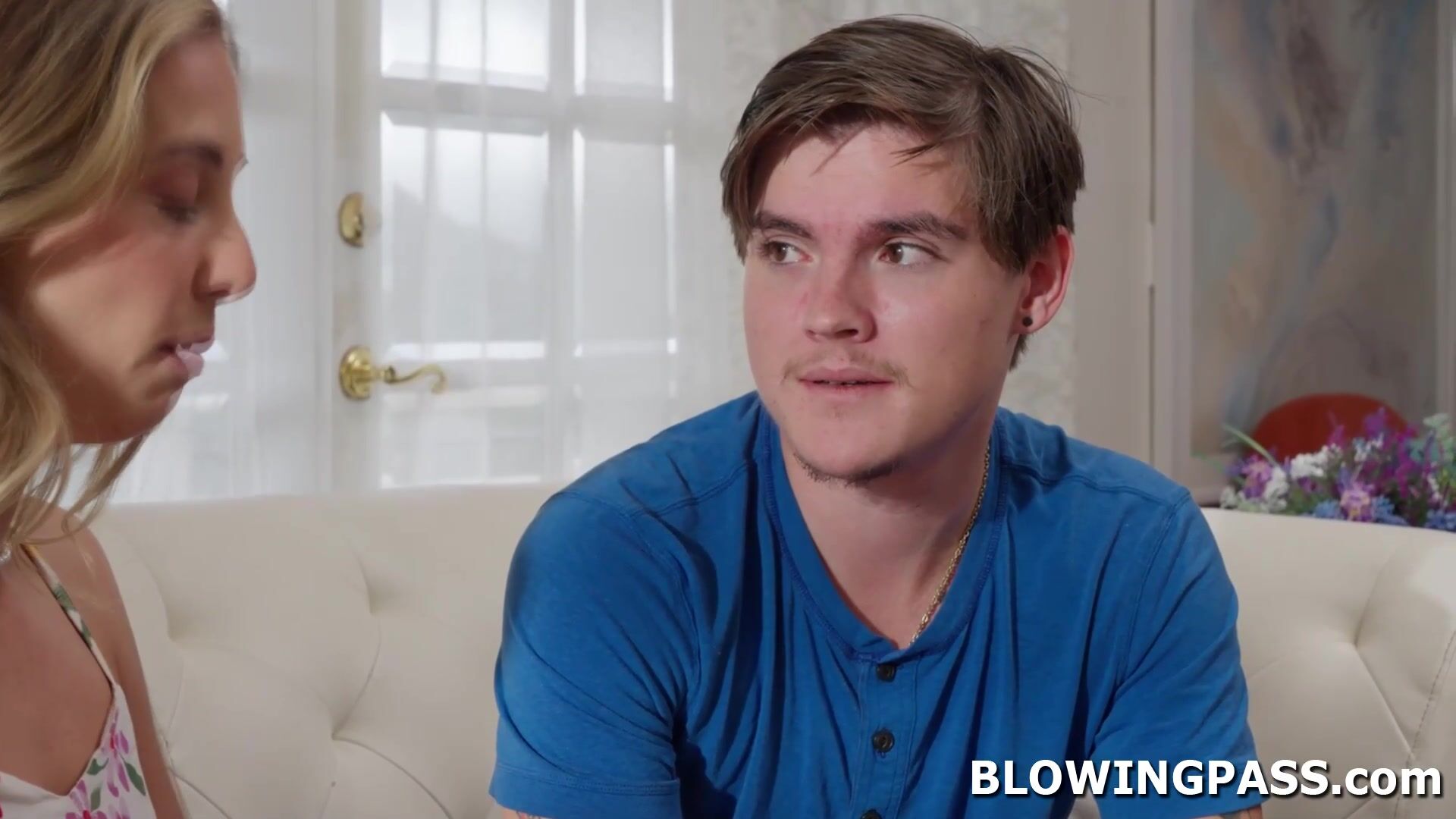 Millie Morgan hired a guy as babysitter because her husband will only fuck if she will get a woman. The milf is flirting with the guy wanting to suck his big cock. She lets him lick her hairy pussy before stroking that dick and giving a deepthroat.