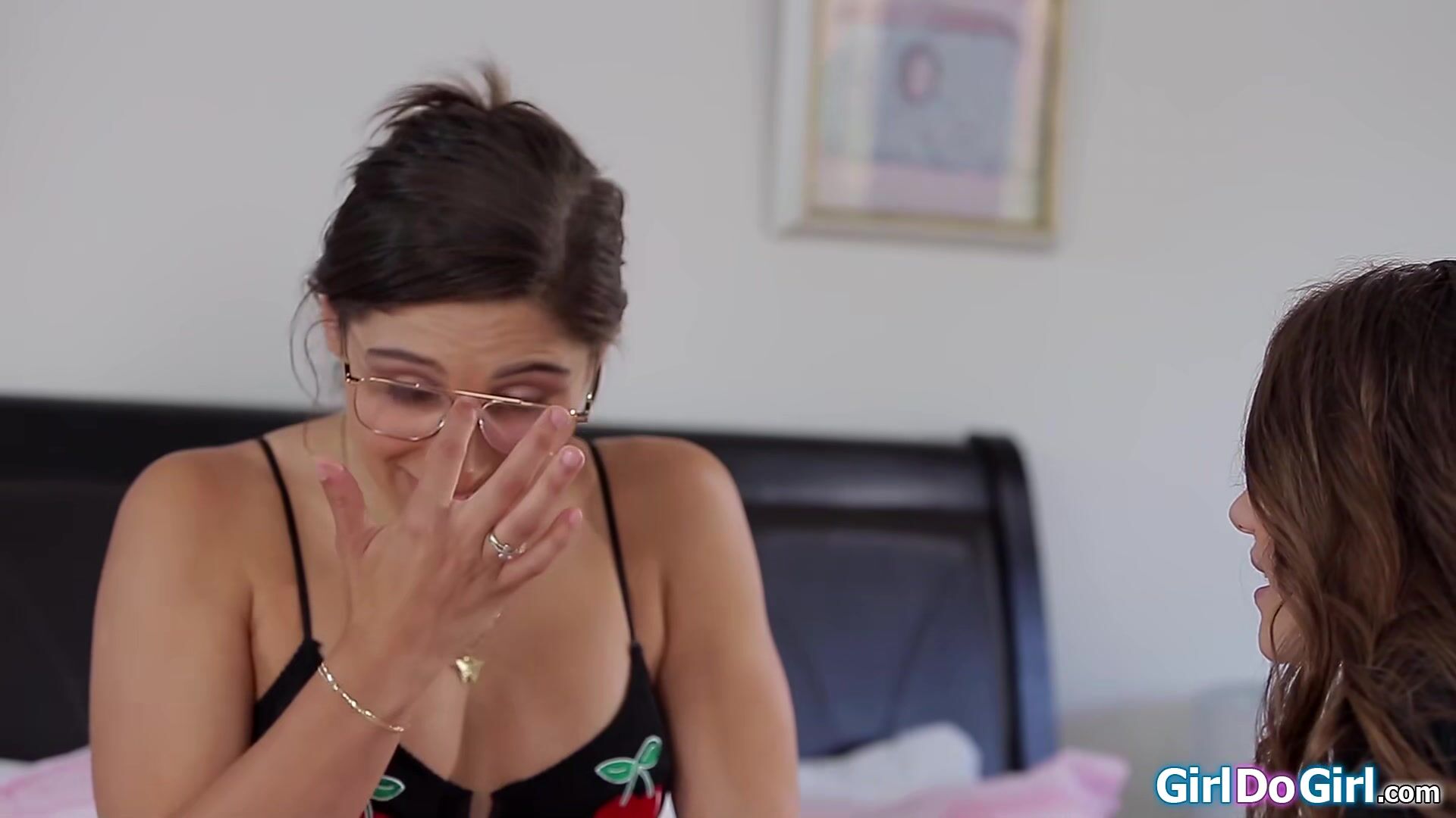 Crazy fan Rebel Lynn found the location where petite pornstar Abella Danger shoots her scene.Shes mistaken for someone else and gets Abella to practice.The small tits teen kisses her and is facesitted.After shes masturbated she gets her ass licked