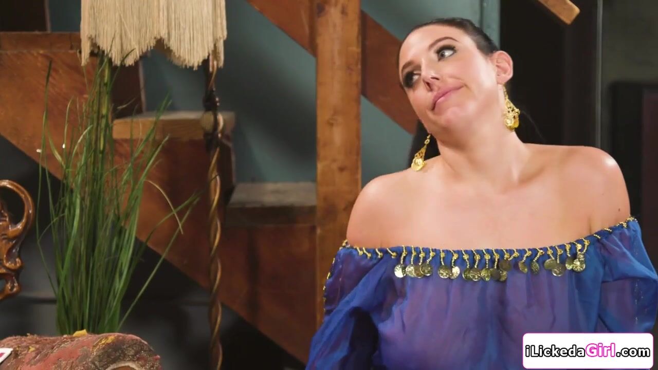 Lena Paul already got what she wanted when reunited with her lesbian girlfriend Sofi Ryan. Now it is time for them to grant genie Angela White's wish. They agree to have threesome. The big tits milf is having fun licking their ass and hairy pussy.