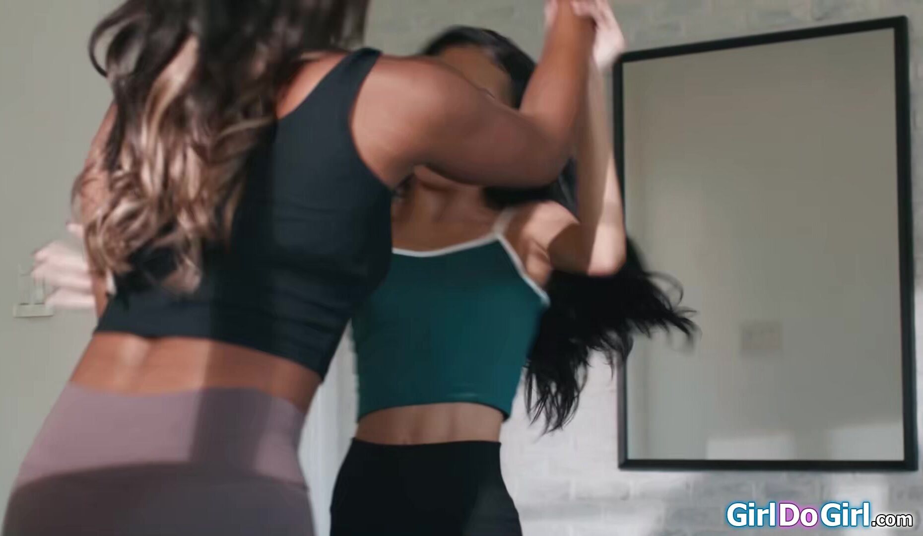 Ebony Rhae Woods gives her bitch classmate Bianca bangs a piece of her mind.The catfight which makes them horny.The lesbians kiss and black babe gets her pussy licked.The petite small tits brunette scissorfucks before she gets her cunt tongue fucked