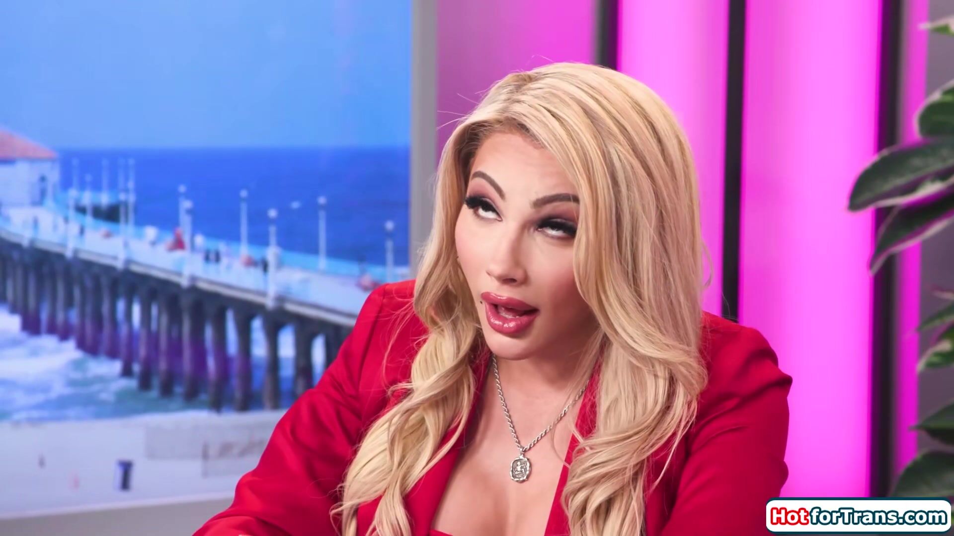 Busty shemale news anchor Ariel Demure gets her big tranny dick sucked by Destiny Mira during a live broadcast.Her latin trans colleague Avery Lust joins the fun.Technical difficulties give the trans babes the time they need to anal fuck each other
