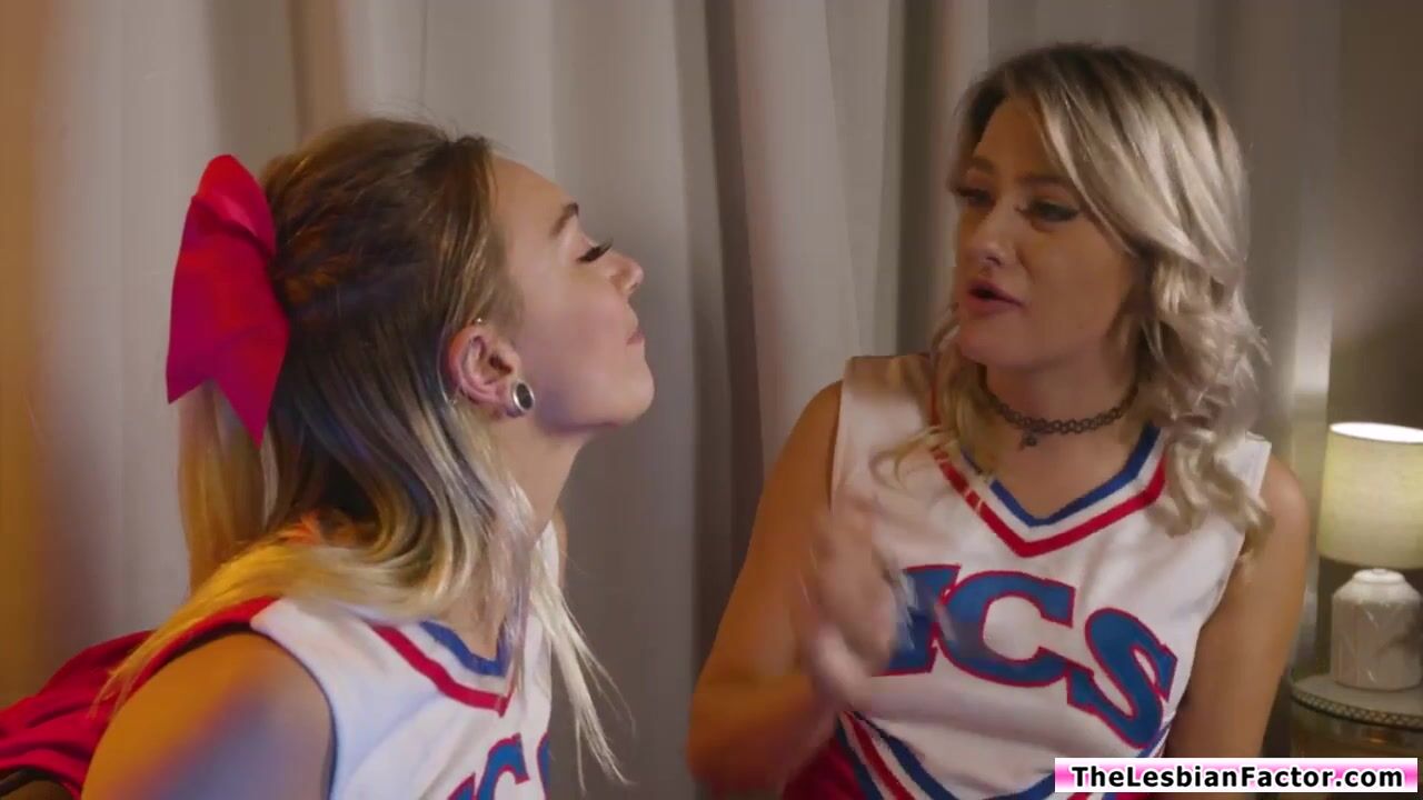 Teen babe Harmony Rivers comforts her lesbian girlfriend Chloe Temple whos having a bad time in the cheersquad. Chloe feels better when she kissed her. Later on she is licking her pussy then use that new dildo as they take turns fucking each other.