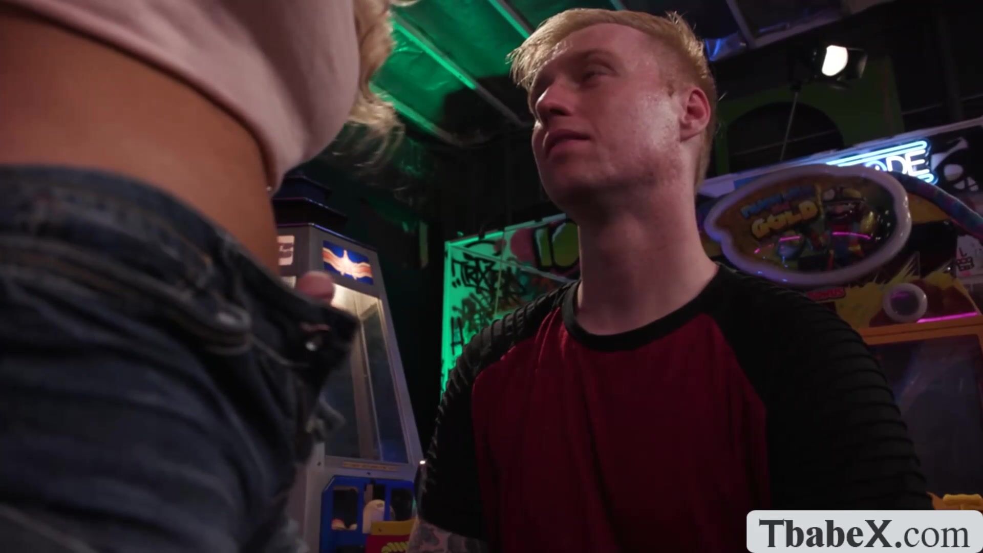 Fucking our new member in the frat house arcade