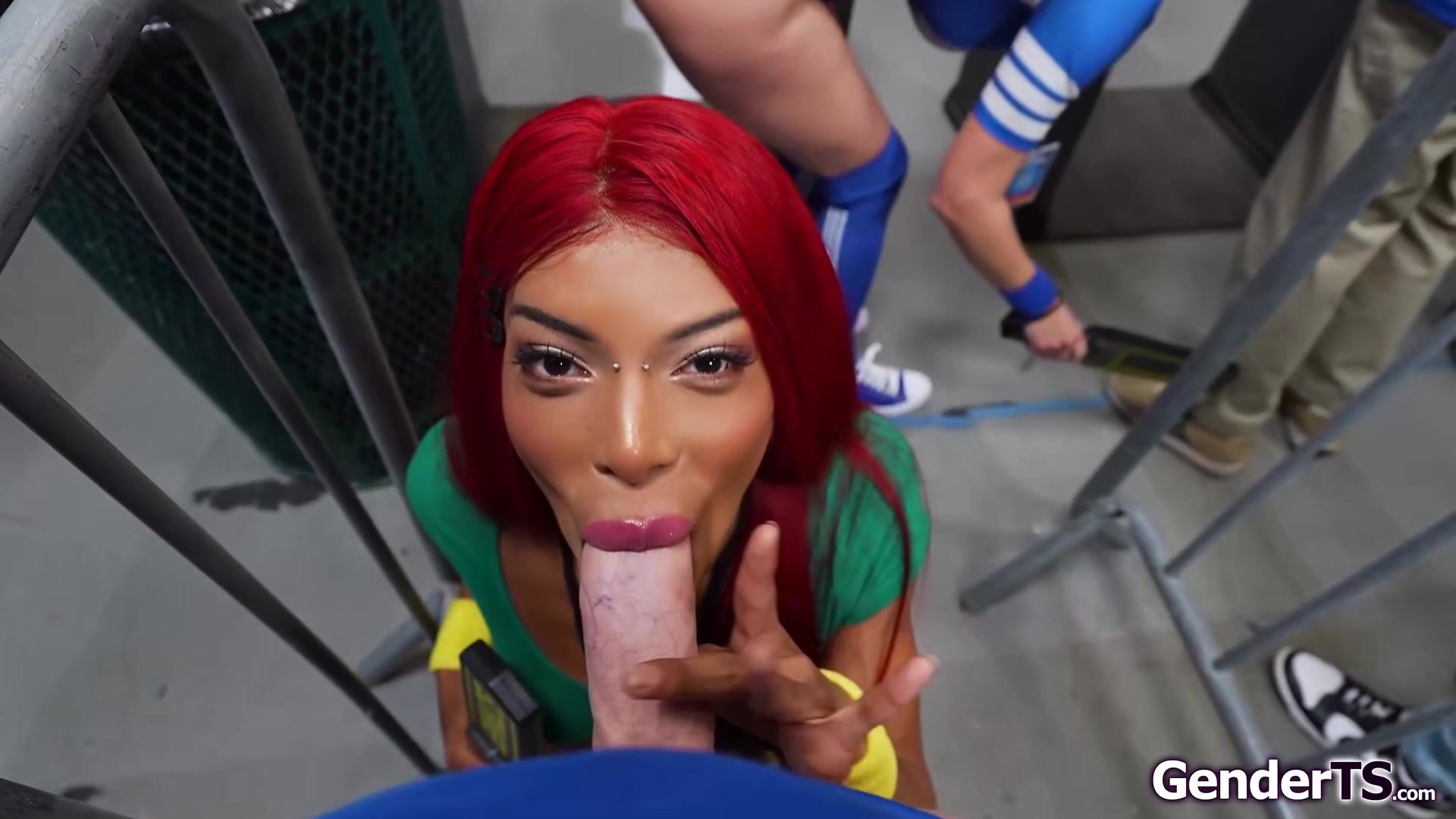 Description: Busty trans Lola Morena sucks cock at the security gate.Her colleague Adira Allure works the row away while the shemale is barebacked in public.The tgirl is sucked by the blonde while she anal rides before she sets her pussy on top of her tranny dick