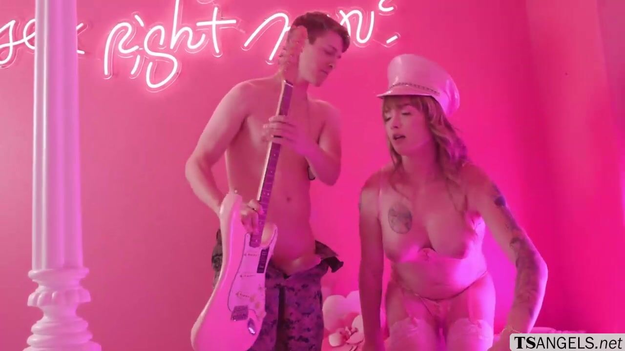 Busty blonde TS gives pleasure to her hero by sucking his dick passionately.After that,she lets him eat her asshole first and then bareback fuck her ass so hard.Go to Tsangels.net for the full video of this.