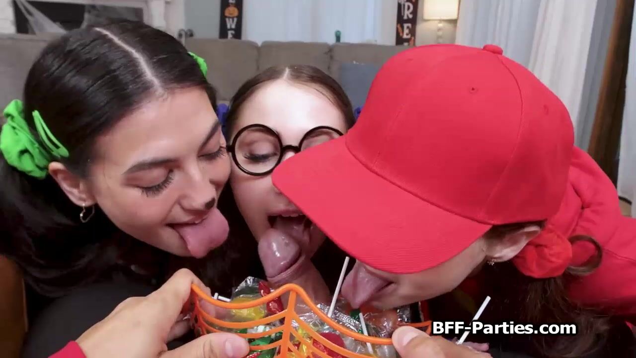 Its Halloween so these lovely besties want some candies.. they are going to take a shortcut and steal them.. but they got busted and fucked big time!