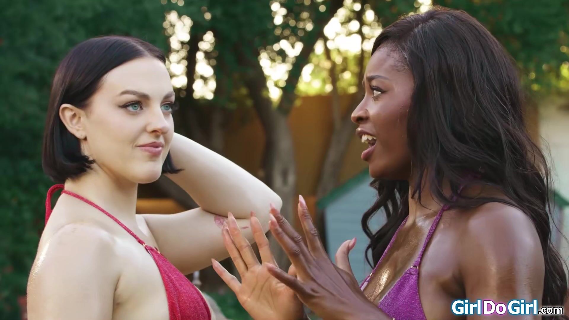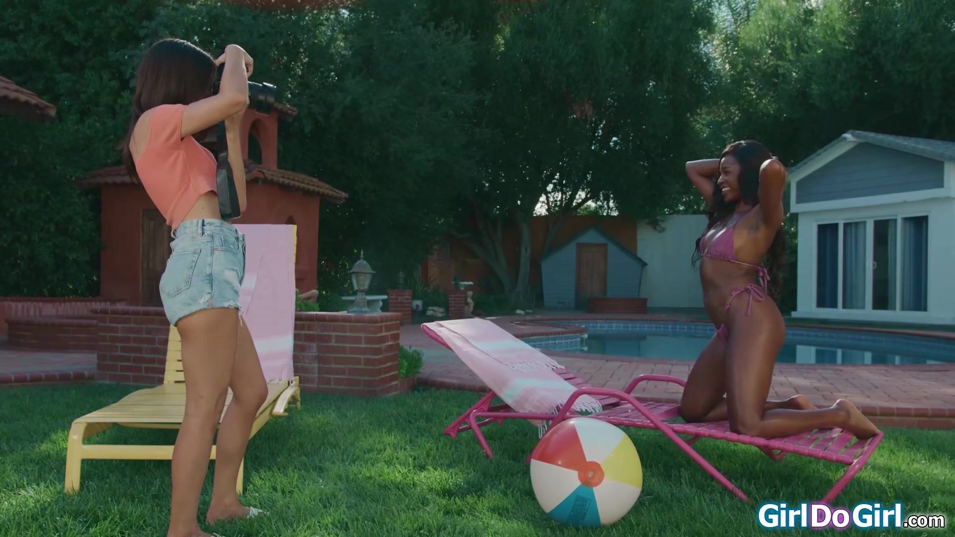 Ebony Nicole Kitt and her bff Lucy Lotus enjoy their outdoor photoshoot.When the photographer Natalie Brooks asks them to kiss they go wild.Both straight girls lick and facesit the petite latina.The black milf is getting oral while eating pussy