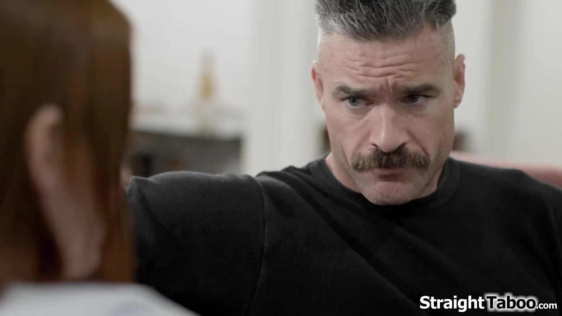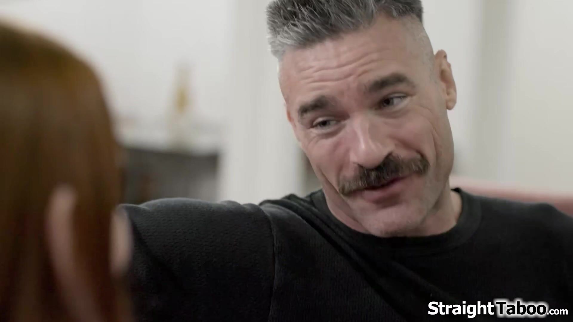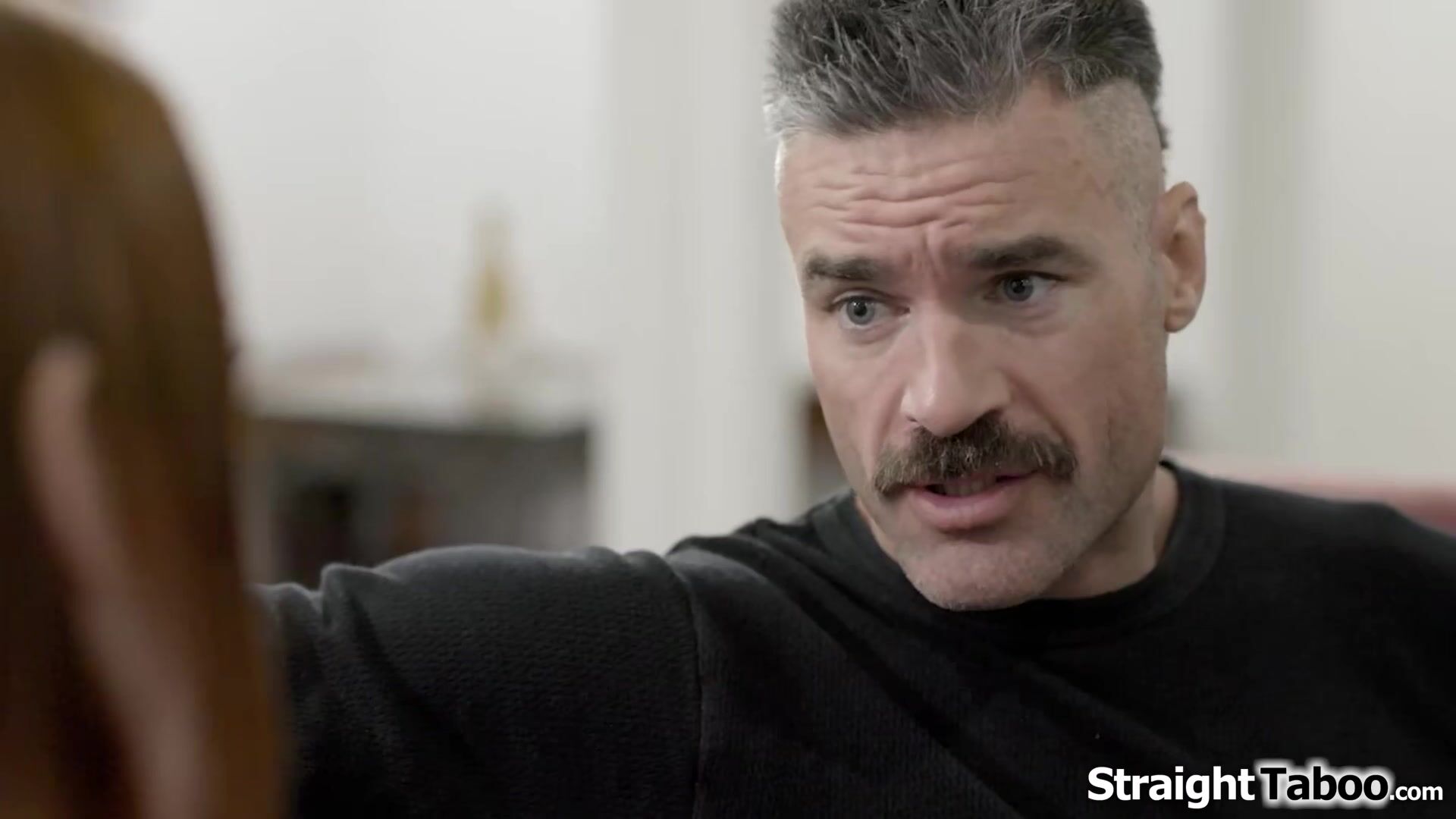 Maya Kendricks bfs stepdad tries to get into her panties.The redhead teen lets him kiss her and he touches her small boobs and pinches her hard nipples.The ginger deepthroats his big cock and gives a two hands handjob before she gets pussy fucked
