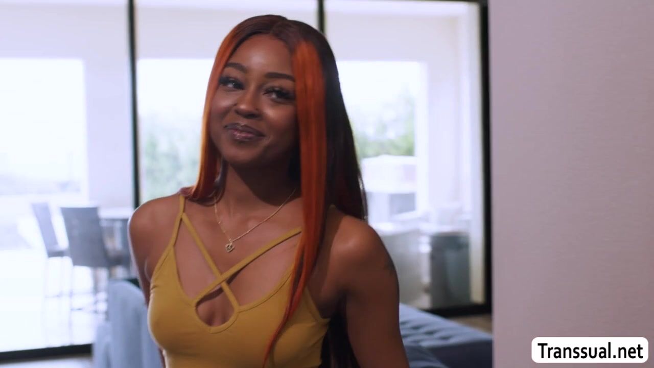 First time meeting the TS girlfriend of my stepdad and I felt horny instantly.I start sucking her hard shecock passionately and I let her fuck my pussy while stepdad is cooking.Go to Transsual.net for the full video of this.