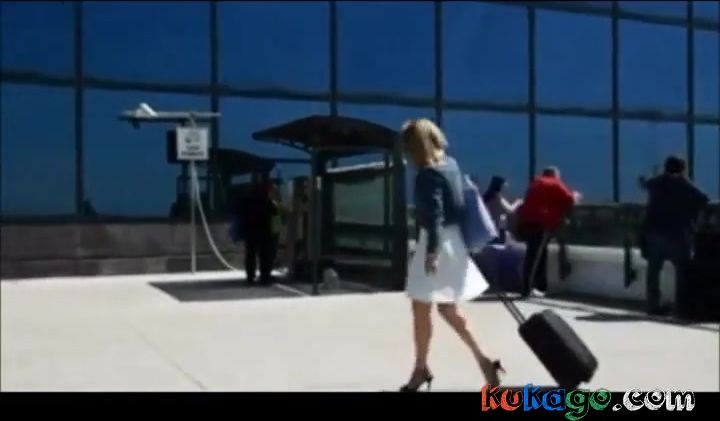 Horny amateur wife taking down panties flashing pussy and boobs on the airport and in the plain before giving blowjob and getting cumshot on her lusty cunt in public toilet