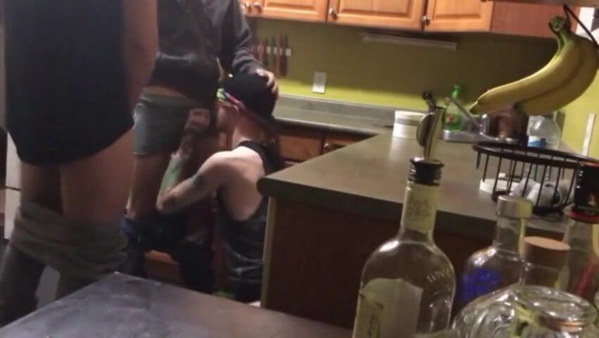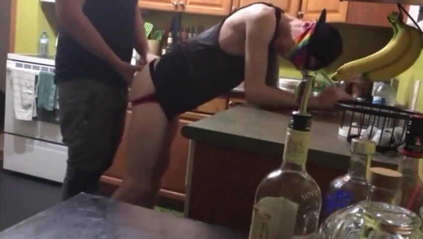 2 buddies fuck me raw in the kitchen