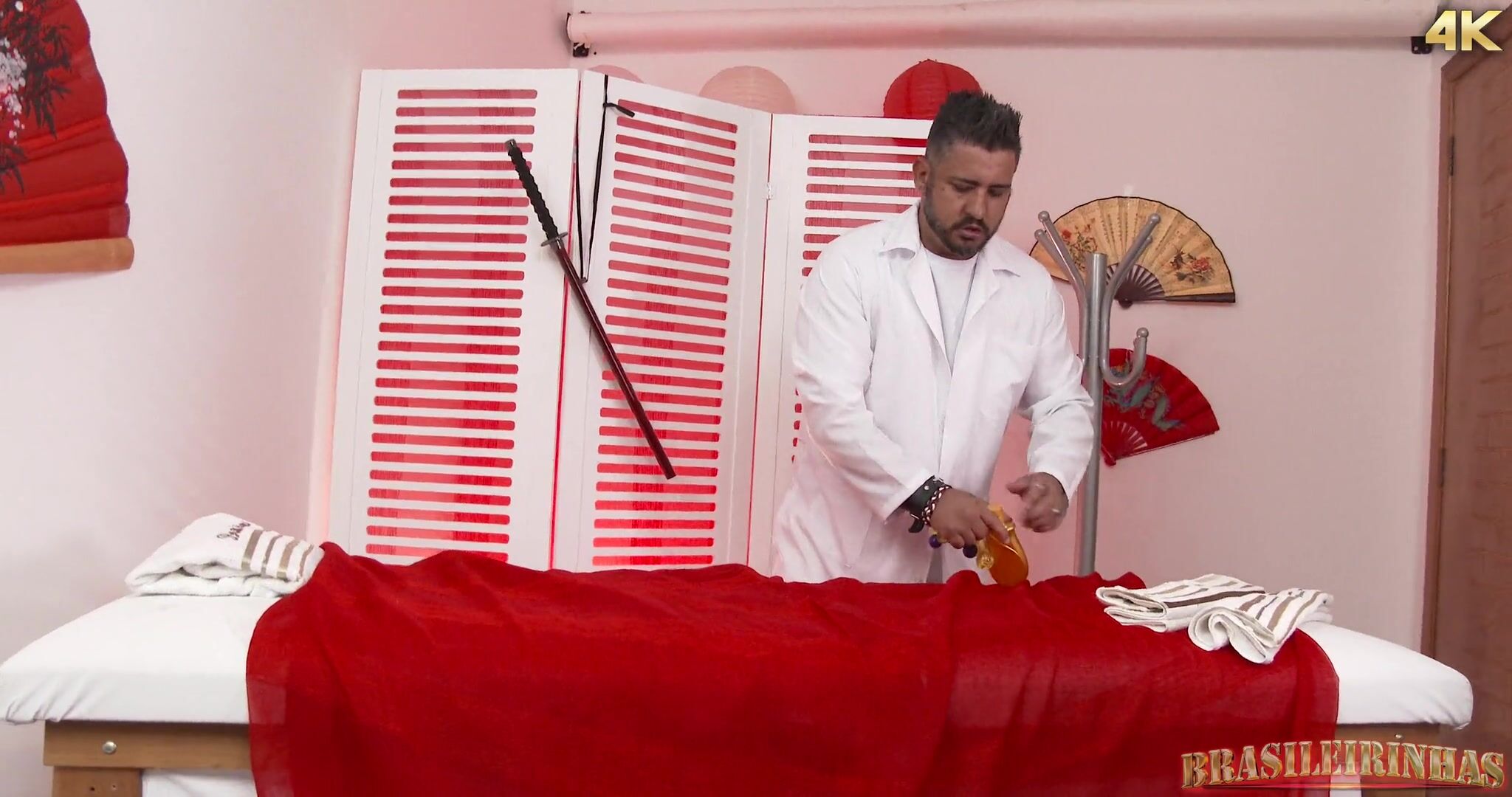 A girl wants a relaxing massage and receives it together with erotic massage. Her tits are rubbed and squeezed, her pussy is fingered and she is orgasmic.