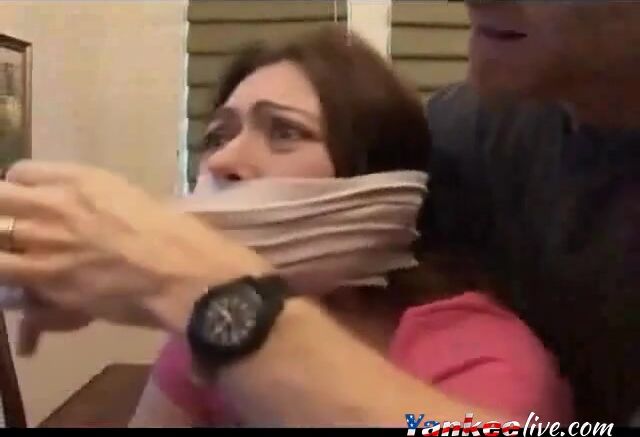 Dumb skank gets all tied up, tape gagged and fucked on a table