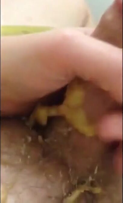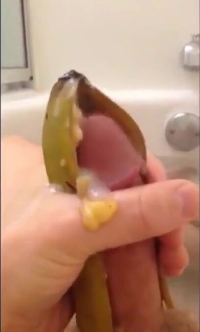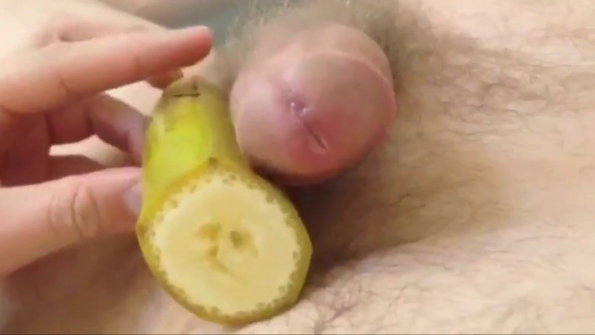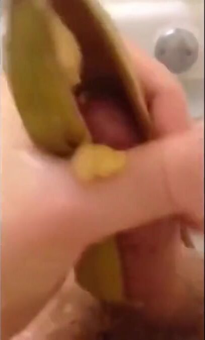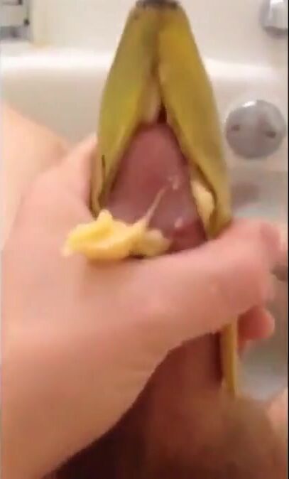 Guy turns a banana into a messy sex toy while laying in the bathtub.