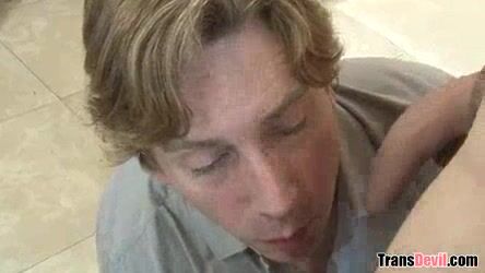 Horny Trans Devours Blonde Tgirl's Throbbing Cock