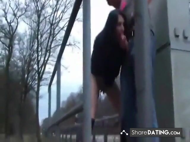 I saw two people banging next to the highway.