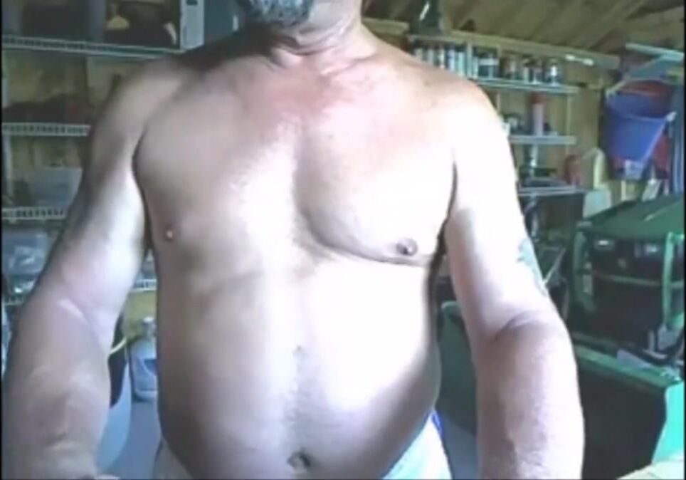 unloading his hairy cock in his garage