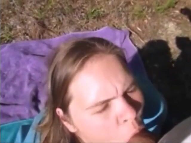 Hot teen have her 1st time outdoors very scared that she is going to get caught having fun sucking dick and taking a load deep down her throat to swallow