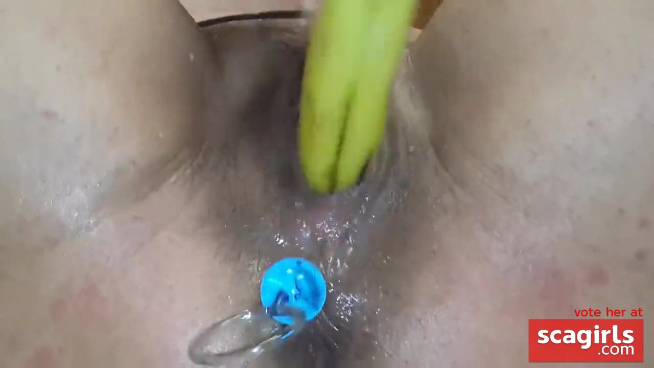 Me squirting multiple times while fucking a banana...I slowly remove the anal beads at the end.