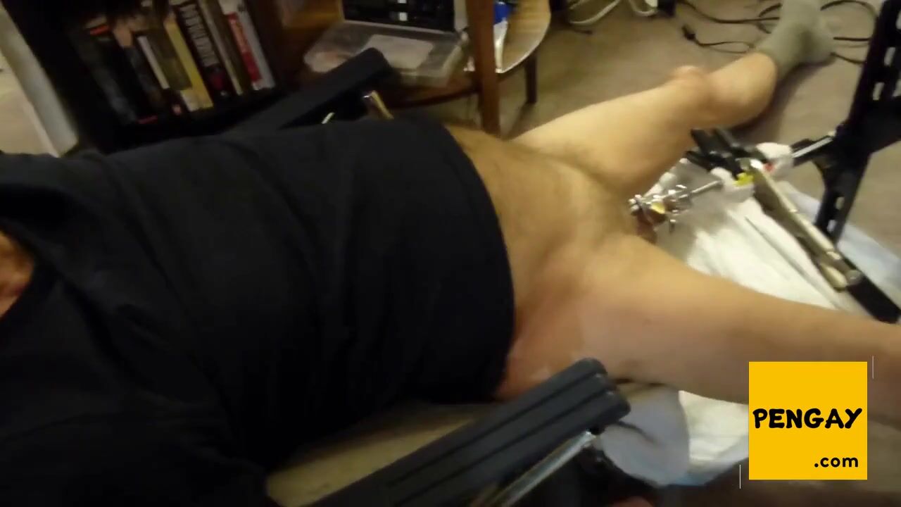 Wearing a chastity cage, the fuck machine sounds my cock with an 11mm sound (biggest that would go into the end of the chastity cage.