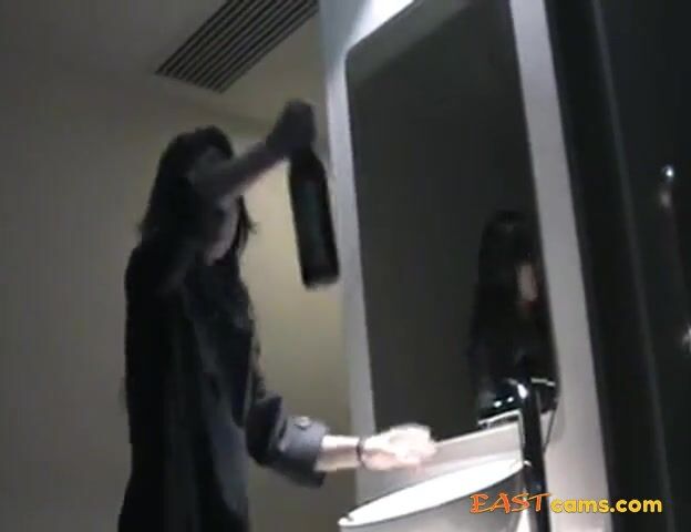 My Chinese girlfriend masturbating with a beer bottle, after putting some hot water inside.