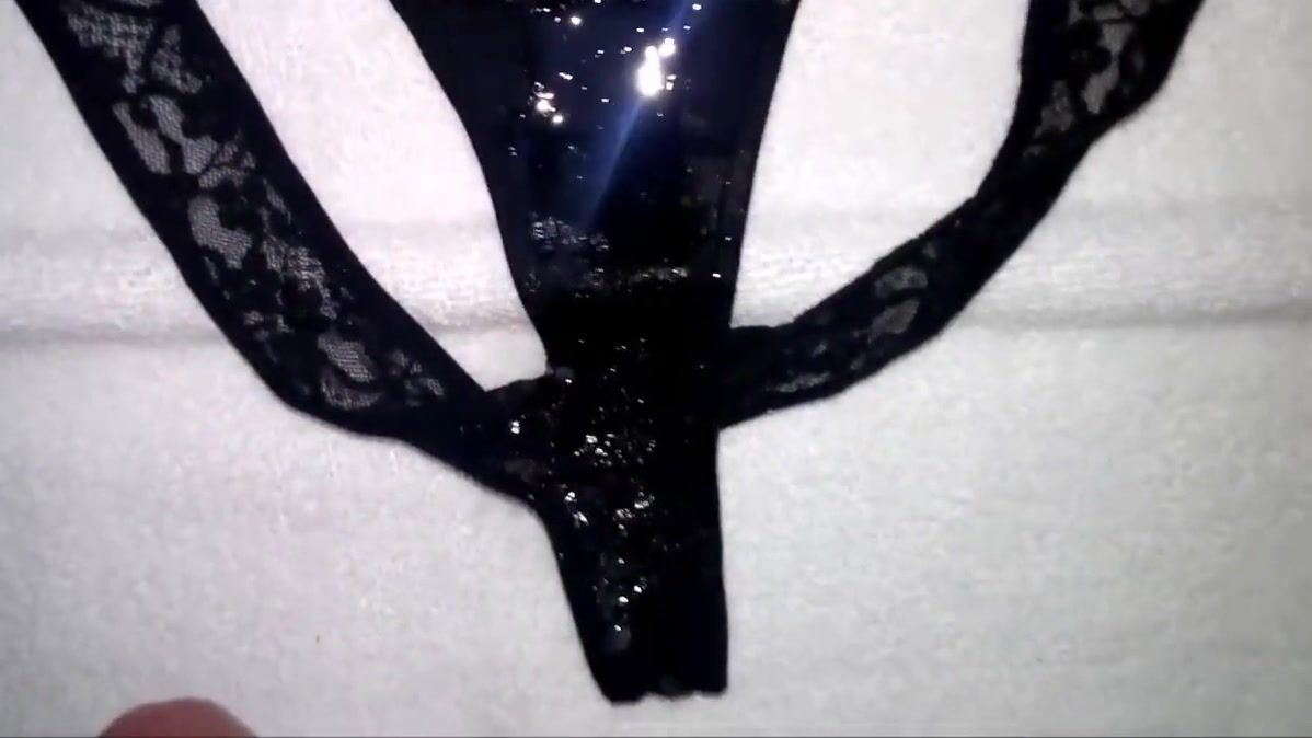 Huge load of cum on my sister's dirty panties (18 spurts)