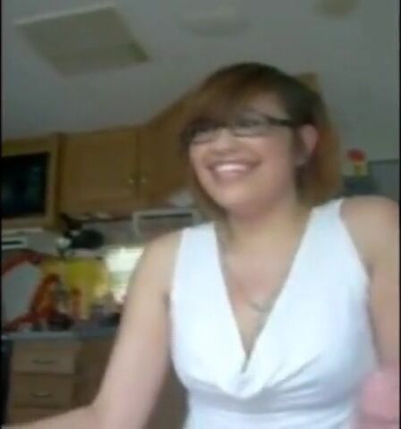 Chubby girl with glasses and self esteem issues sucks two guys she just met. Exposes her nice rack while jacking off and sucking two dudes.