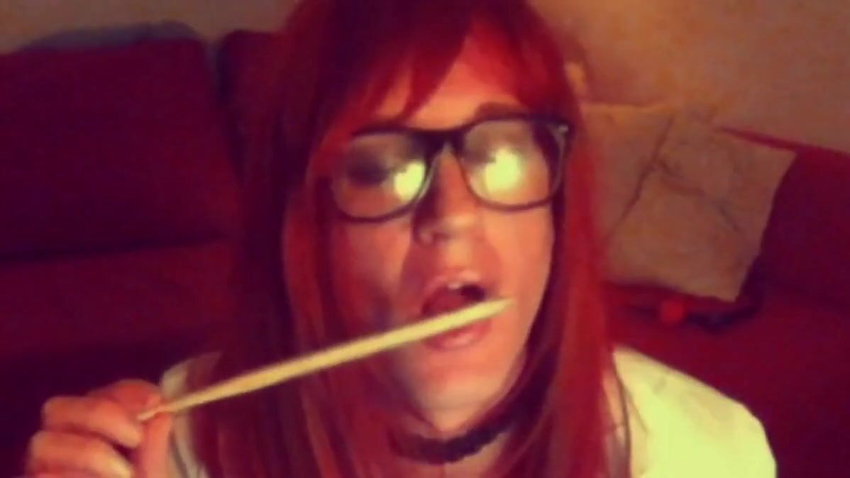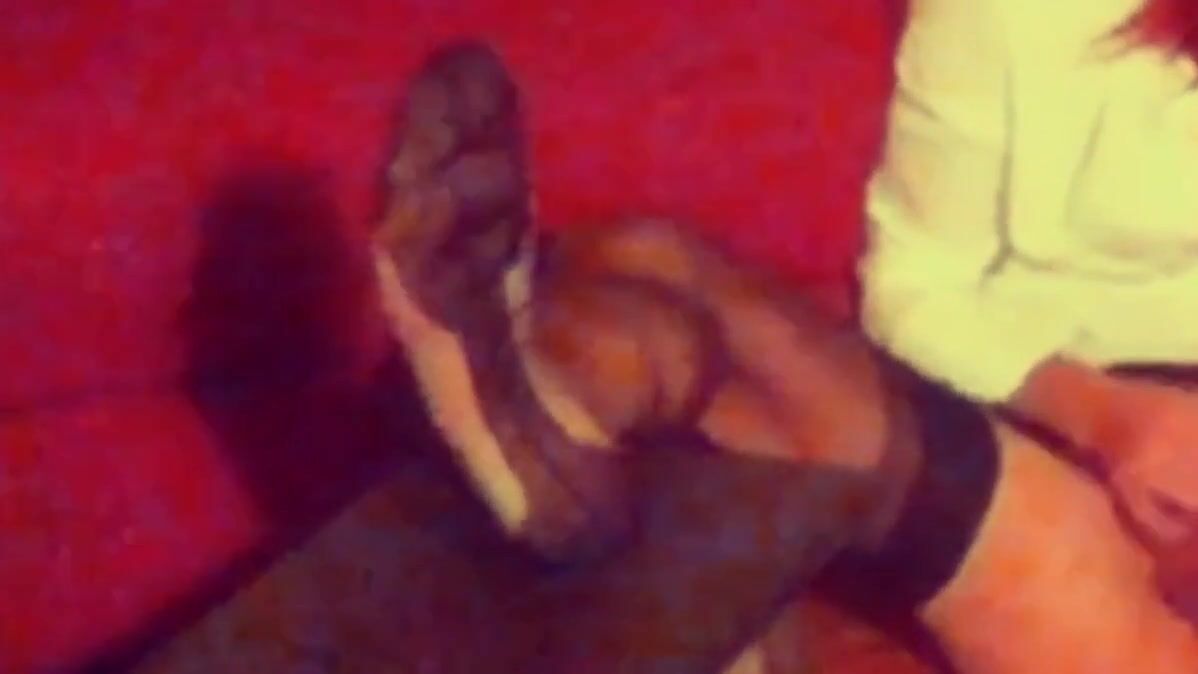 In black full fashioned stockings,ball gag, butt plug Valerie loves to humilate herself. Crossdresser nylon feet
