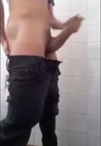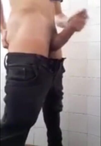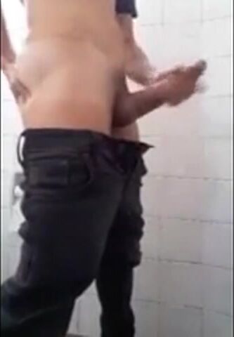 Friend jerk con public restroom