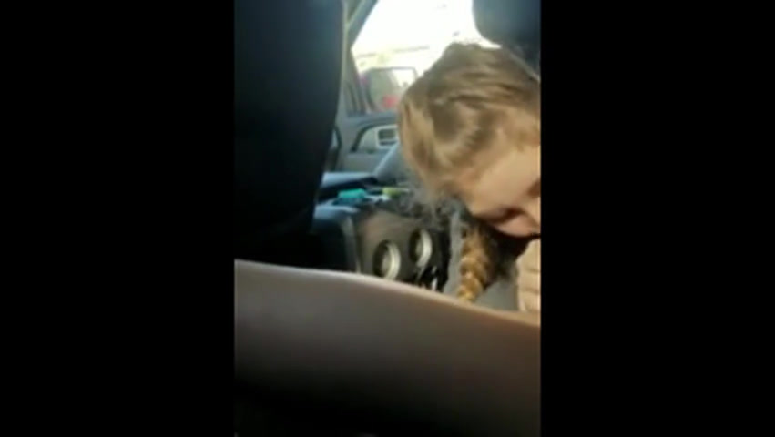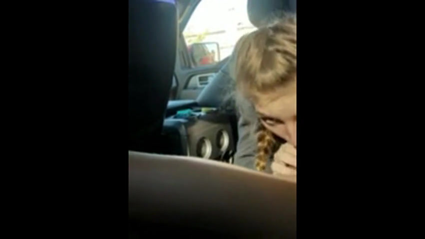 Blonde college girl with braids sucks cock in the car
