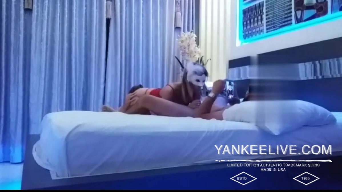 Amigo fica escondido atrás da cortina e faz surpresa pra esposinha gostosa.