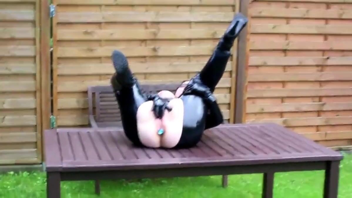 Outside on the table with legs spread and a plug in the ass, I tell you my hot thoughts and wishes.