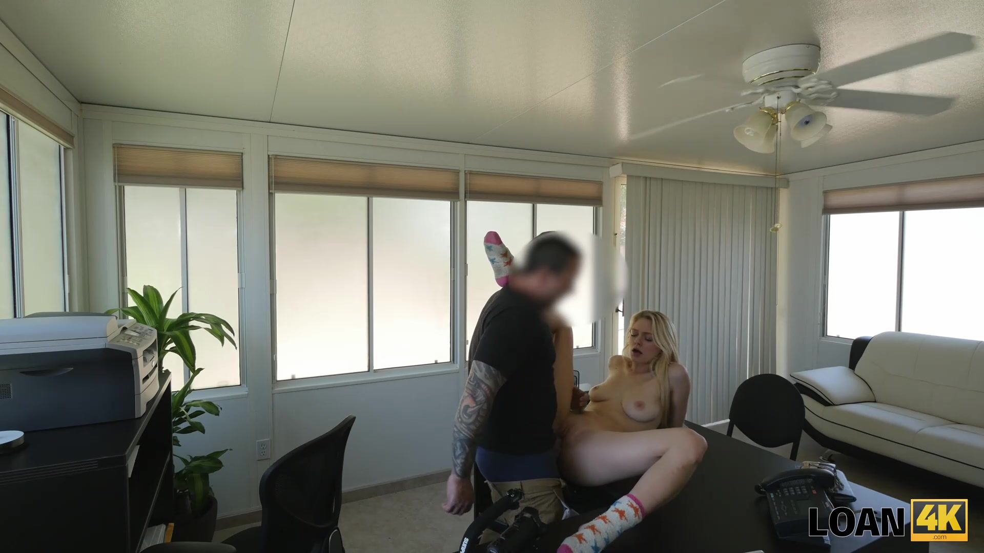 Blondie Allie was sitting in loan office in total despair. She needed money badly and all her incomes were unofficial. But she'd caught credit manager attention with information about her work in strip-club as a go-go dancer. After that he made a proposal for her - photo and video taping of her boobs in exchange for money. That wasn't a problem for such girl, but since guy offered more, she was ready for sex. His dick appeared in her mouth very fast and she started to suck it as a sweet lollypop. When this guy turned her and came in to her pussy she started to moan... And she've noticed that she really like that all process has been taped...