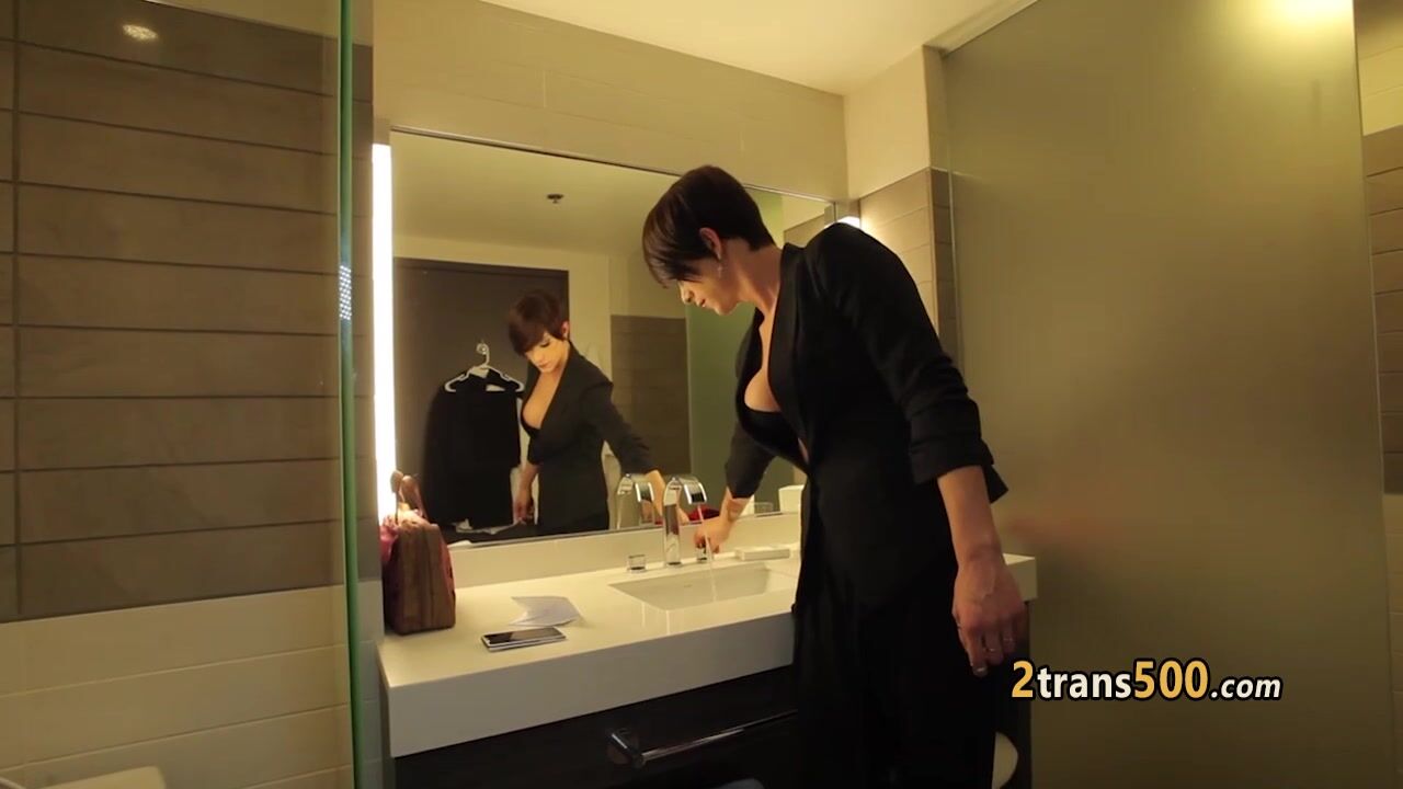 Horny muscular stud sucked cock of busty shemale then stuffed her tgirl tight hole and banged her deep until he cummed all over her ass