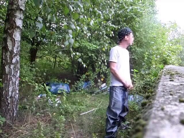 In the woods shiney baggy pants