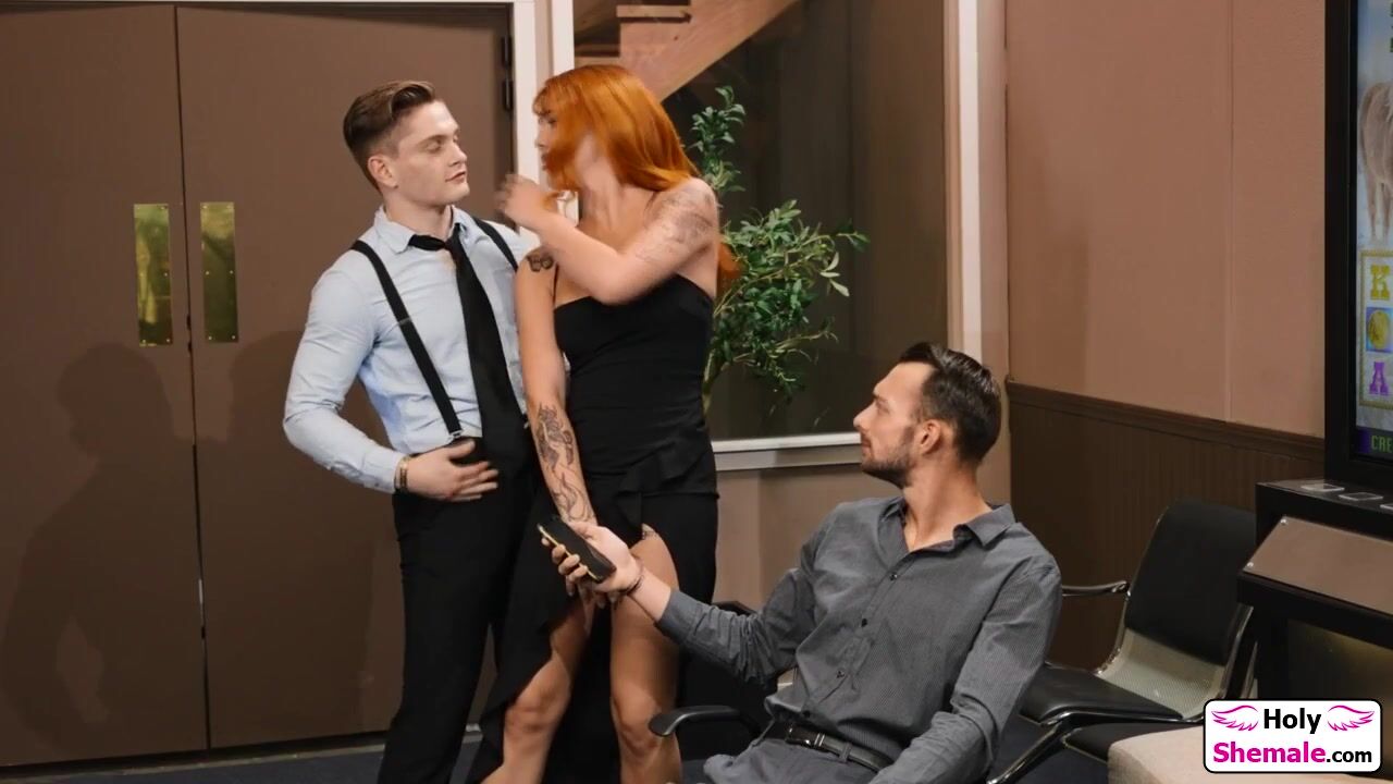 Busty shemale Daisy Taylor used as a decoy to cheat.The guard finds out and the tgirl lets him suck her ifo her hubby.The redhead trans is barebacked.The big tits ts deepthroats after her husband left and then anal rides his big cock with a hardon