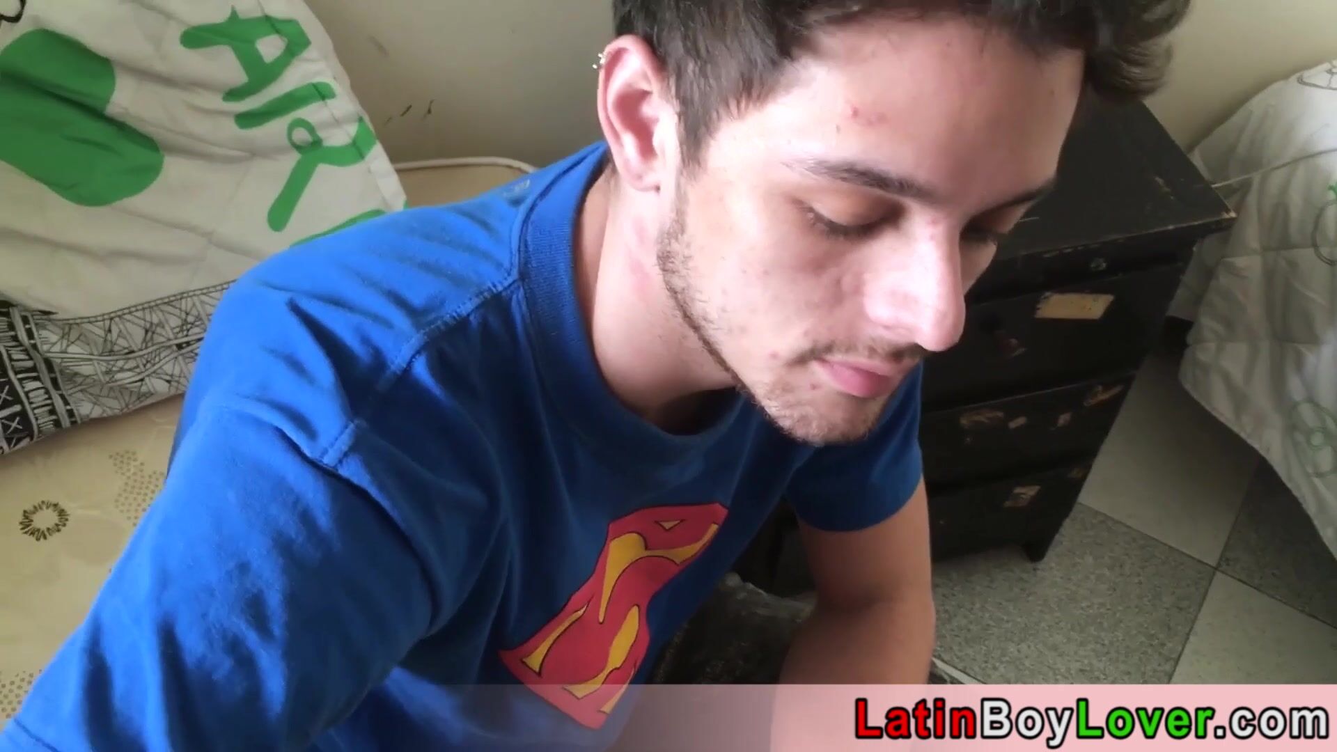 Amateur latin stud helping out his big cocked mate