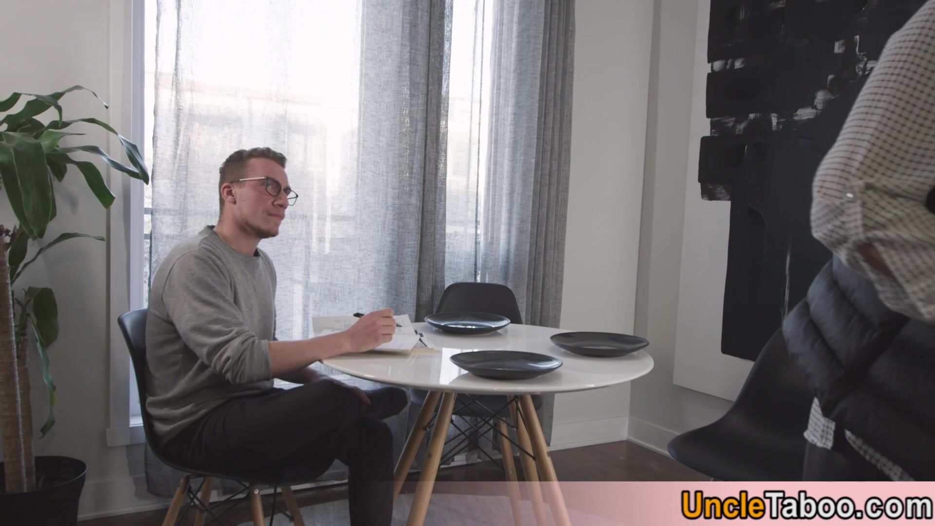 Stepson William Moore preparing the salad and muscle stepdad Markus Kage is pounding him from behind the he has to suck his big dick and lets him to hareback his ass in front of his mature mommy