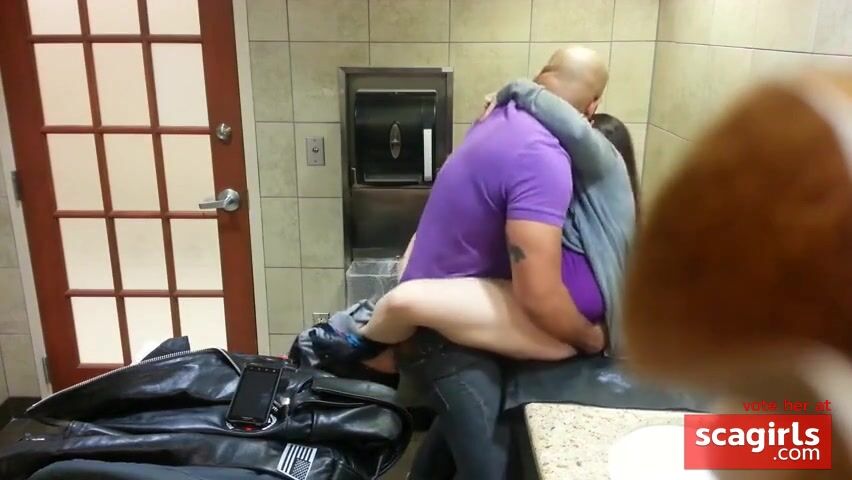 Couple went into the family restroom and fuck untill he bust a nut inside of her.