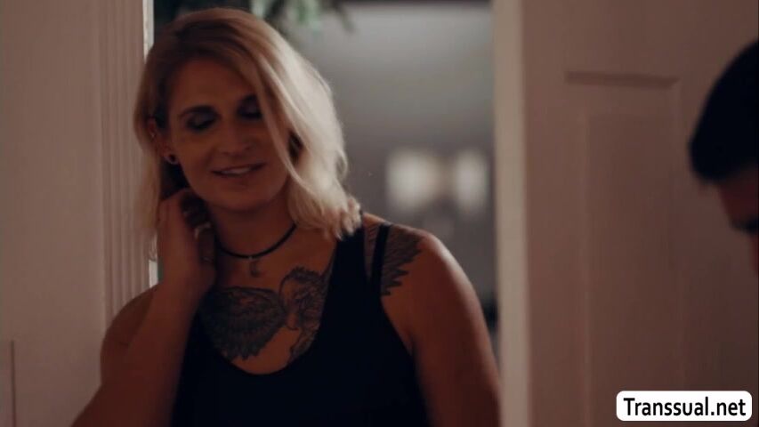 TGirl Summer Rayne is in the couch with a guy and they are talking, After a few minutes of talking, They suddenly kiss each others and get naked. Not long enough Summer sucks dudes cock and then gets her butthole fucks hard by dudes bigcock.