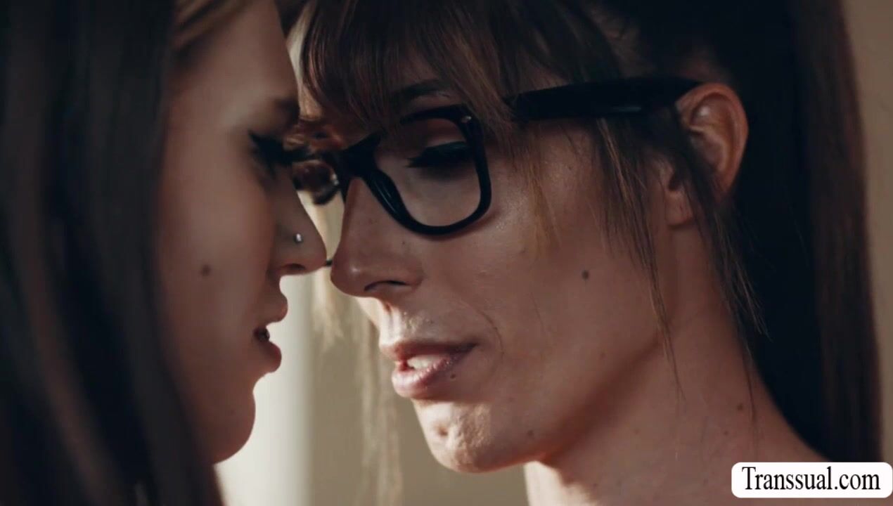 Blonde TS talks to her TS stepmom that her wife cheated on her.After that,they go on the bed and start kissing each other passionately.Next is,they pull out their shecocks and suck it before she lets her stepmom fuck her wet ass.