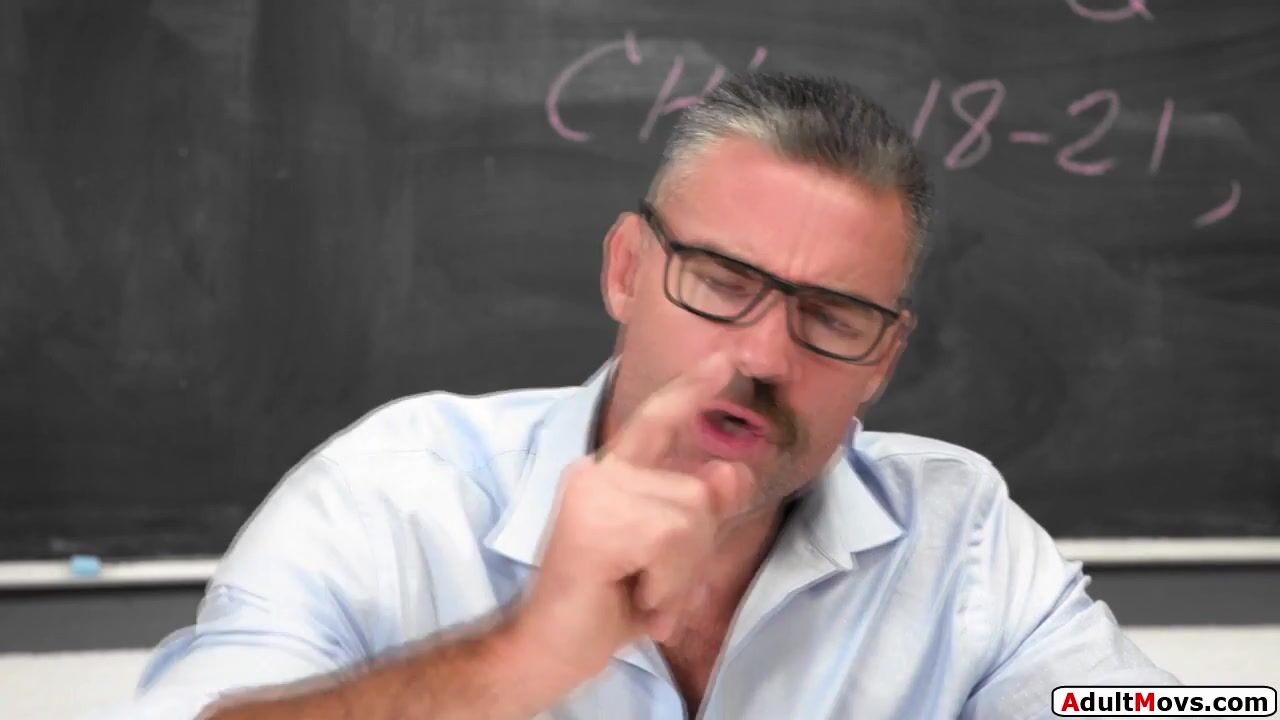 Teacher gives his petite bratty student some spanking discipline.He deepthroat facefucks the blonde coed and she jerks off his big cock while sucking his balls.The small tits babe is bend over the desk and is banged hard in her tight shaved pussy