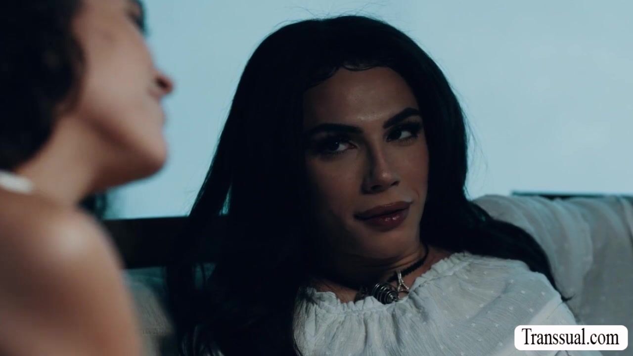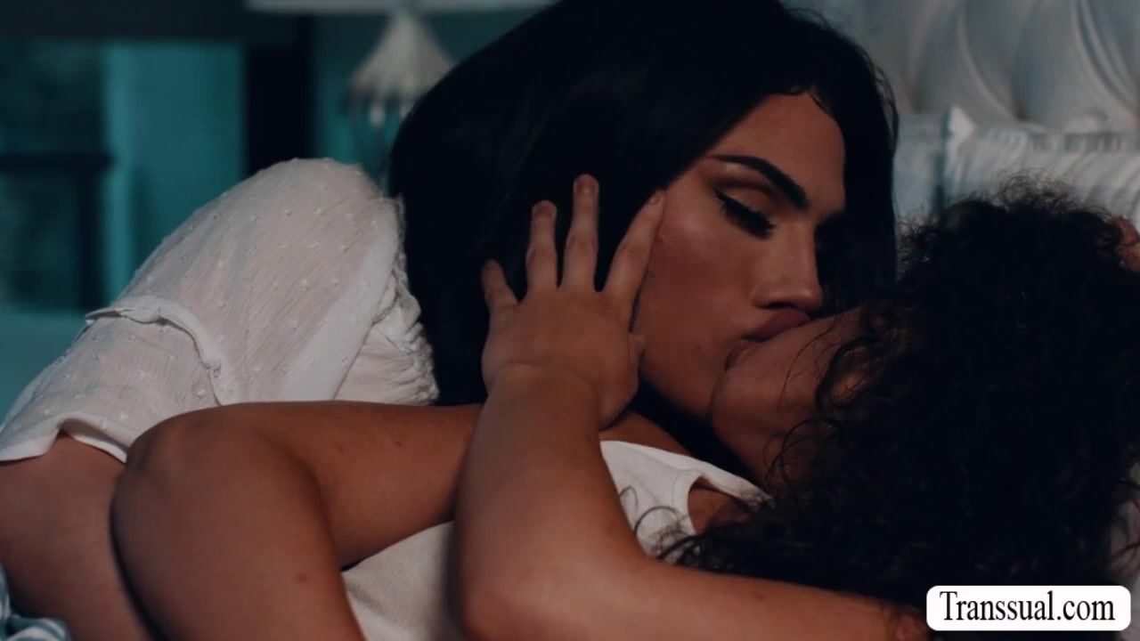 TS stepmom and her stepdaughter are on the bed talking about their feelings to each other.After that,they get horny and start kissing each other.Next is,she licks her stepdaughters pussy and in return,her stepdaughter sucks her shecock and rides it