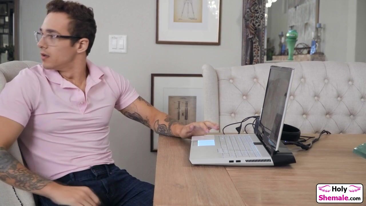 Small tits tgirl Paradise sees the it guy jerking off on her pics.With her tranny dick out the shemale takes his cock in her mouth and sucks him off.The trans kisses him and gives a handjob before getting a blowjob.The ts babe bareback anal rides