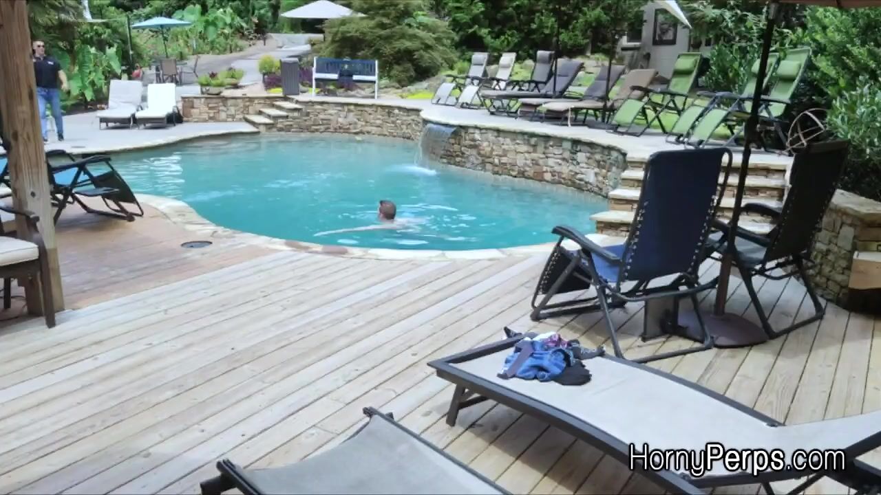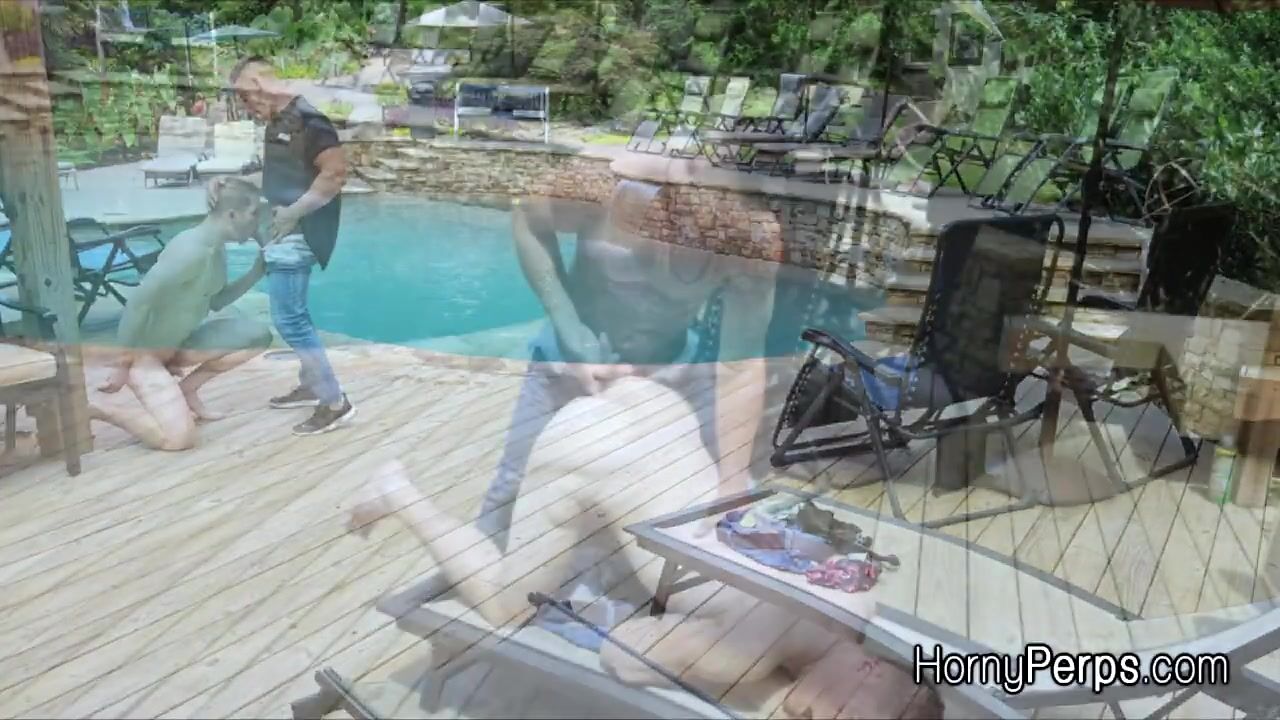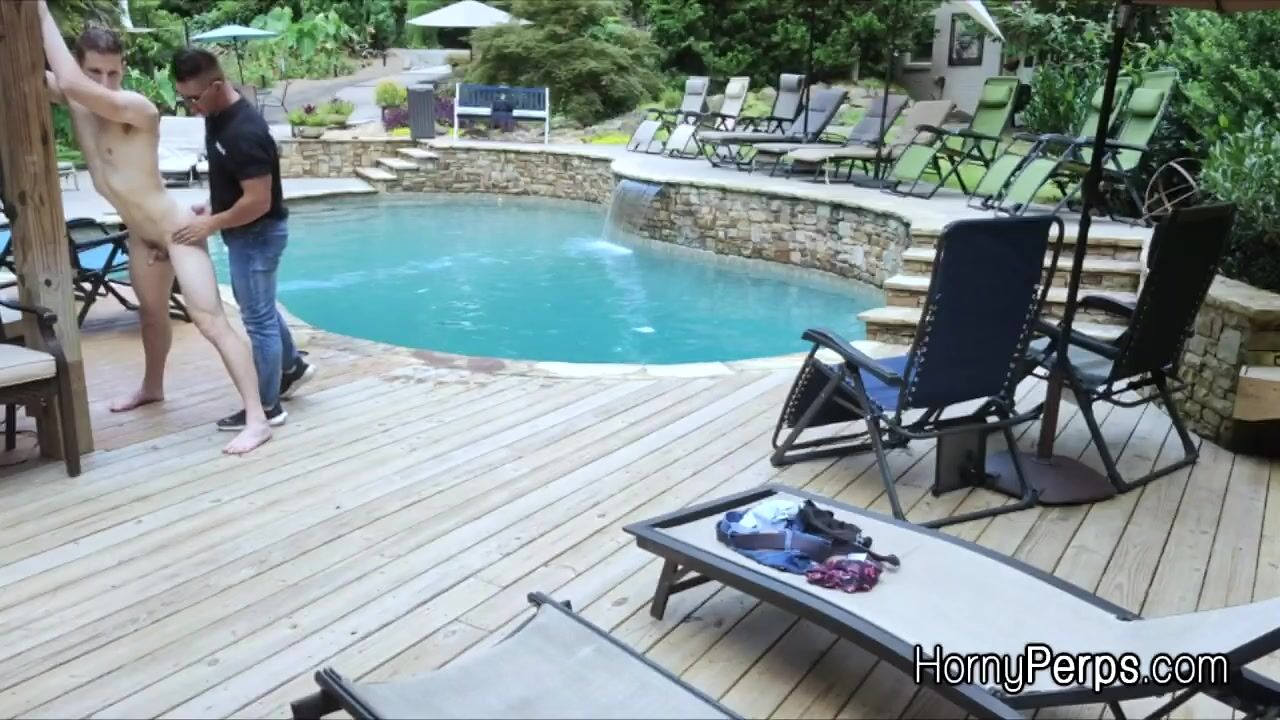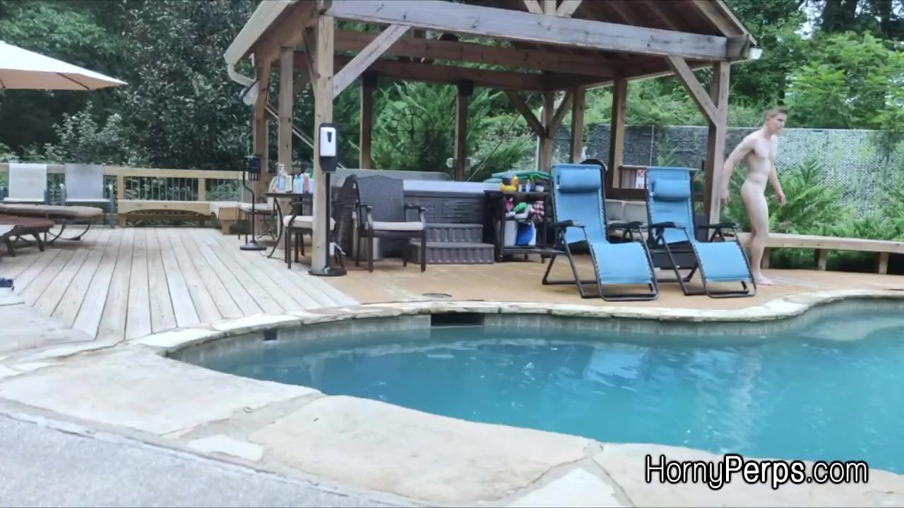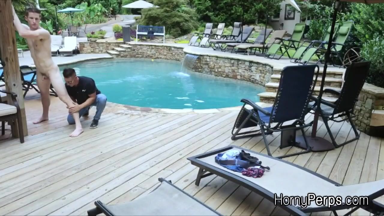 Jax is on duty and he catches this hot trespasser in the pool. It's time to teach him a lesson, first by getting his cock sucked then by a lot more!