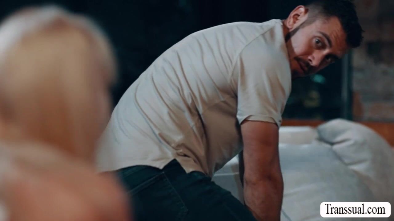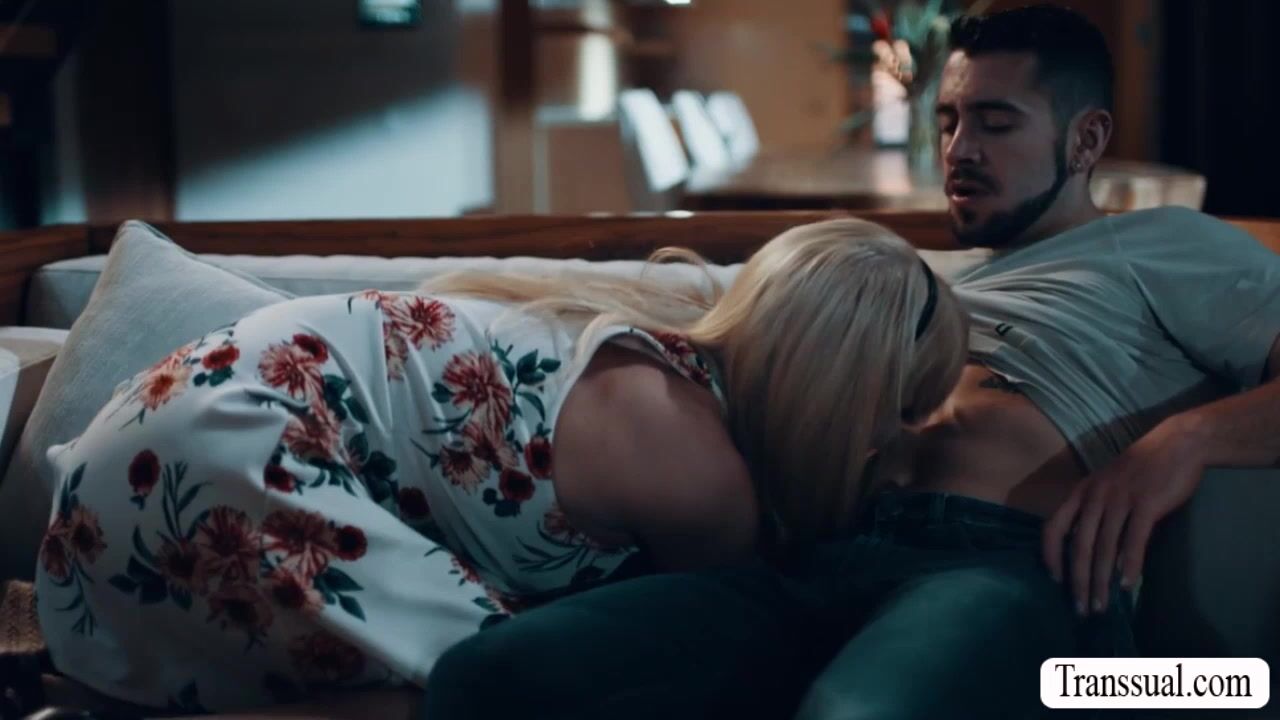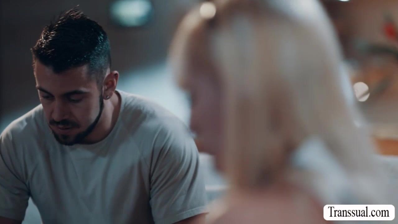 Busty shemale is so worried because her wedding ring is lost.After that,her shy stepson helps her to find it and she then throats his big cock passionately.Next is,she lets her stepson suck her nipples and fuck sher wet ass so deep and hard.