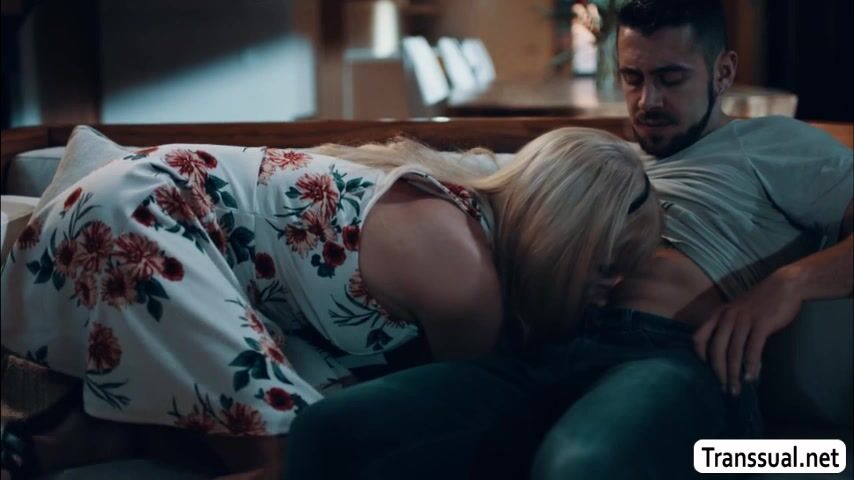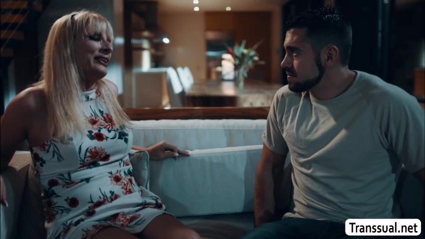 Shemale blonde lost her wedding ring but her shy stepson helps her to find it.After that,they get horny and start kissing each other and she then throats his big cock passionately.In return,her stepson fucks her wet ass so hard.