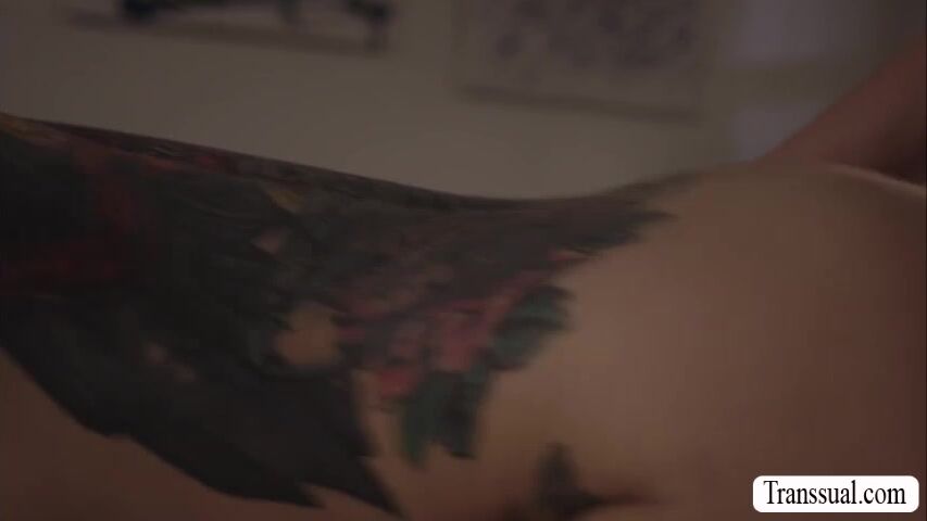 Tattooed babe gets her wet pussy fucked by stepbros TS girlfriend